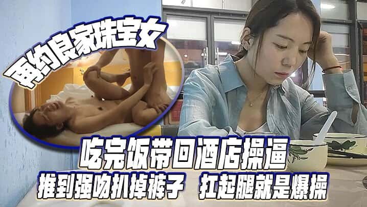 [再约良家珠宝女] 吃完饭带回酒店操逼,推到强吻扒掉裤子,扛起腿就是爆操