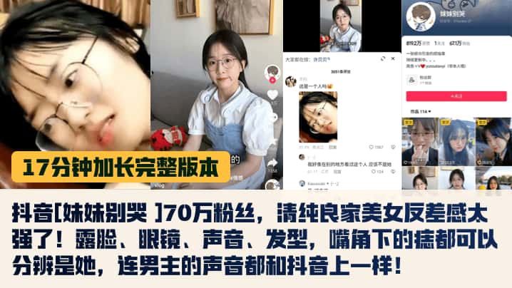 【17分钟完整版】抖音[妹妹别哭 ]70万粉丝,清纯良家美女反差感太强了!露脸、眼镜、声音、发型,嘴角下的痣都可以分辨是她,连男主的声音都和抖音上一样!