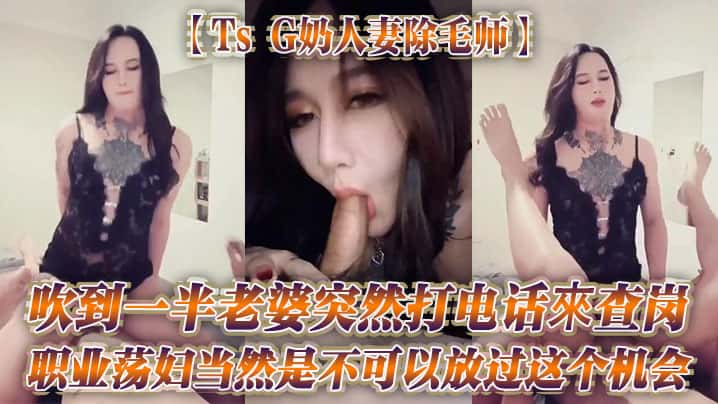 【Ts G奶人妻除毛师】吹到一半老婆突然打电话來查岗,职业荡妇当然是不可以放过这个机会