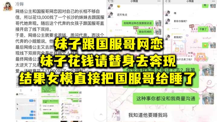 妹.子跟国.服哥网.恋,妹子花.钱请替.身去奔.现,结.果女模.直接把.国服哥.给睡了