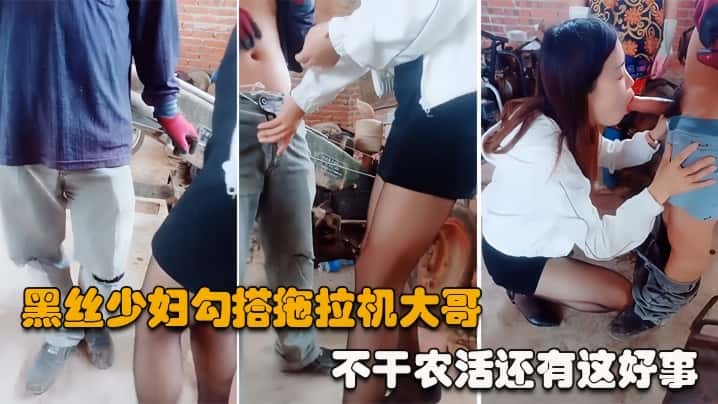 【勾搭拖拉机大哥】黑丝高跟齐逼短裙少妇,户外勾搭农民大哥激情