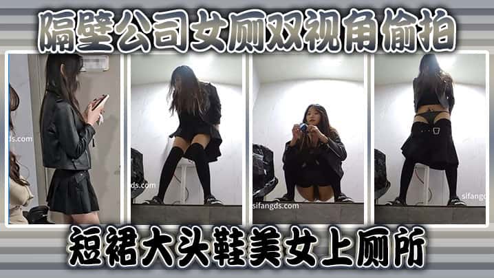 隔壁公司女厕双视角偷拍短裙大头鞋美女上厕所
