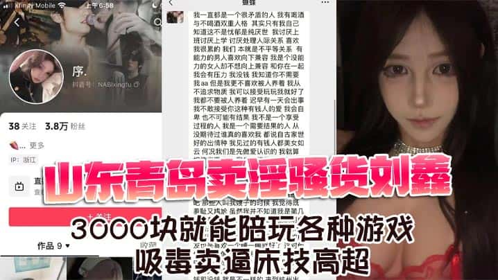 山东青岛卖淫骚货刘鑫 3000块就能陪玩各种游戏 吸毒卖逼床技高超