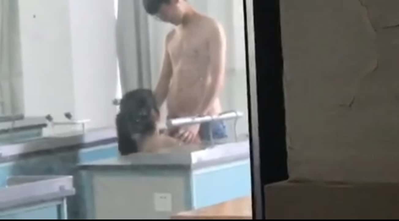 冒着被偷拍的风险在教室做爱