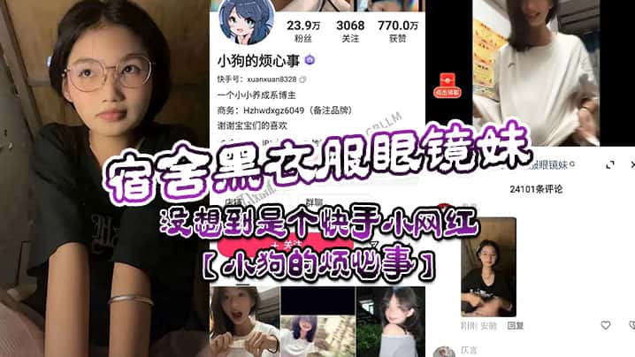 宿舍黑衣服眼镜妹,没想到是个快手小网红【小狗的烦心事】,平日里看起来文静可爱的眼镜妹,居然晚上宿舍偷偷地搞黄播。