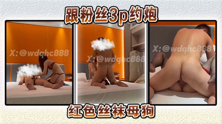 跟粉丝3p约炮红色丝袜母狗